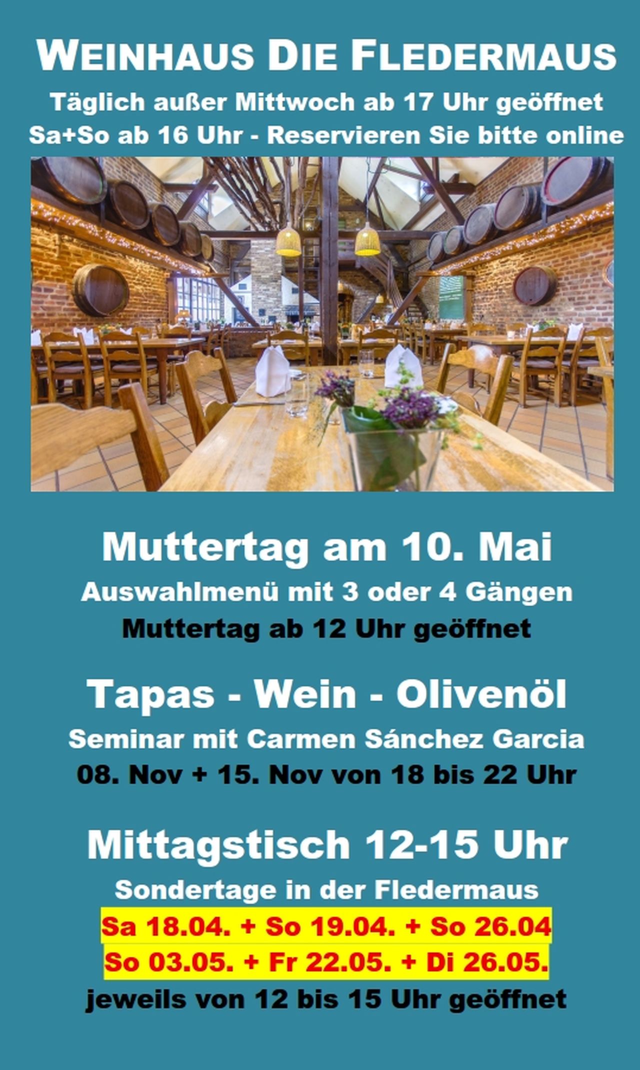 So 26.04. ab 12 Uhr geöffnet
