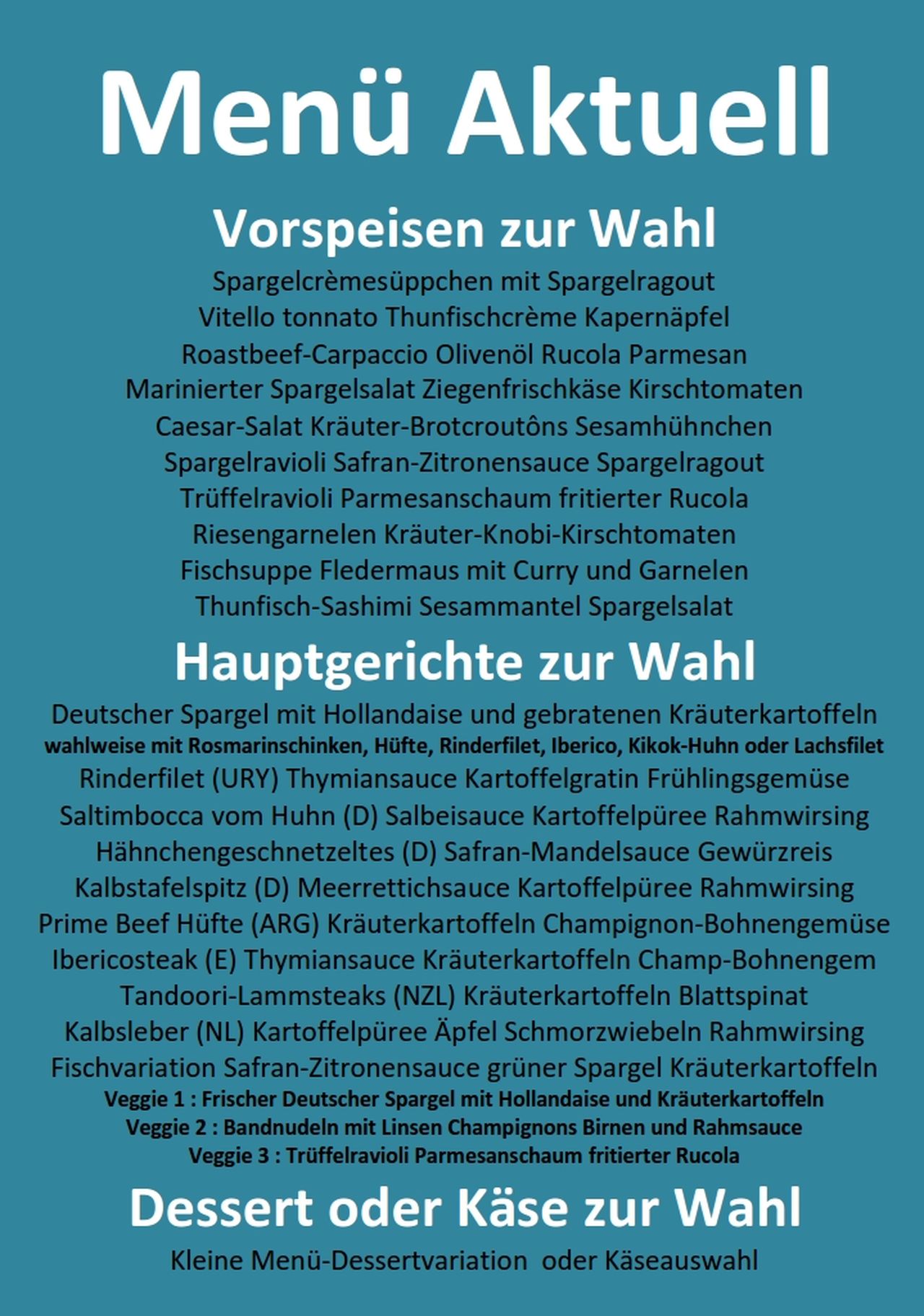 Menü mit 3/4 Gängen