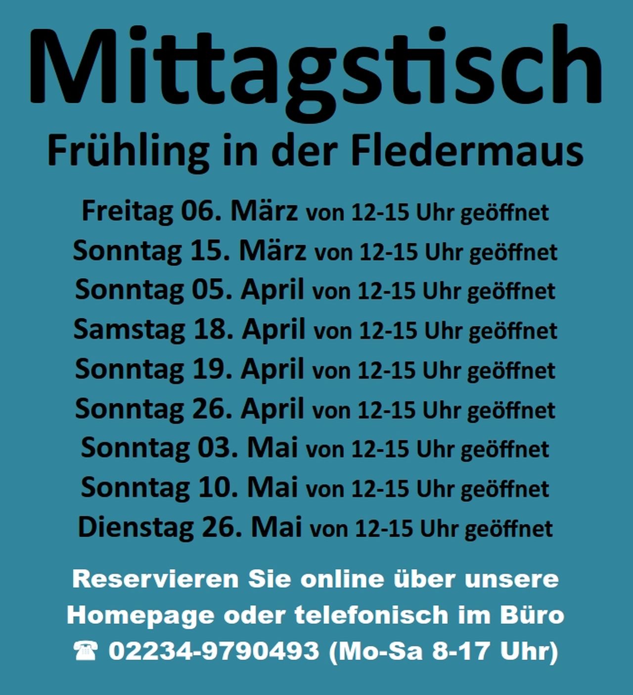 Reservieren Sie online (siehe Button) oder telefonisch im Büro unter Tel. 02234-9790493 (Telefon nur Mo-Fr von 8-16 Uhr).